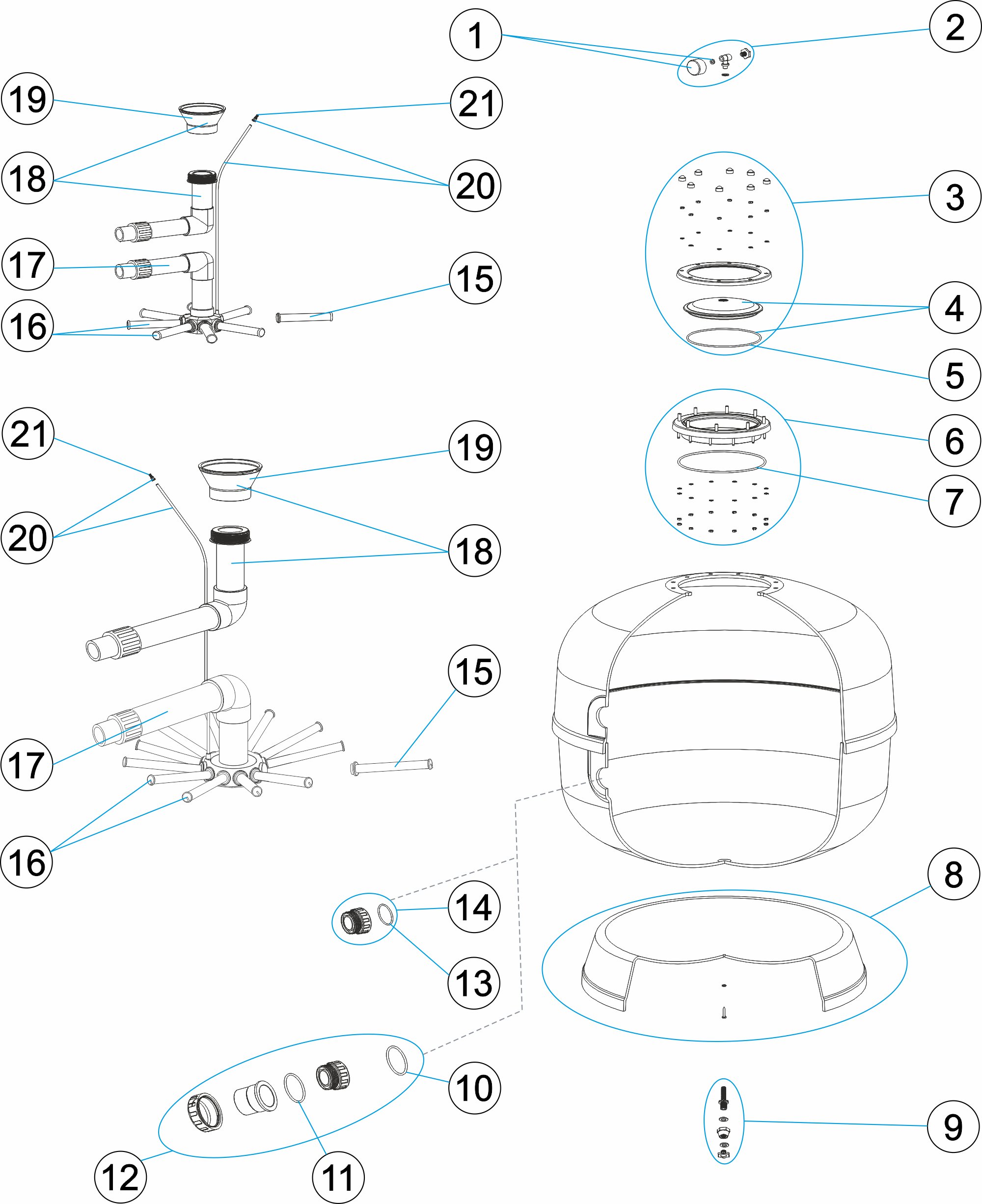 Фильтр "Aster" Ø 900 мм, 32 м3/ч, с боковым подключeнием 2", засыпка 0,6 м