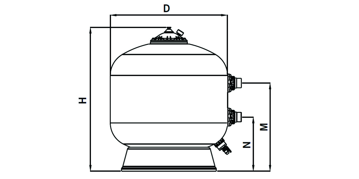 Фильтр "Berlin" Ø 1200 мм, 56 м3/ч, с боковым подключением, засыпка 1 м