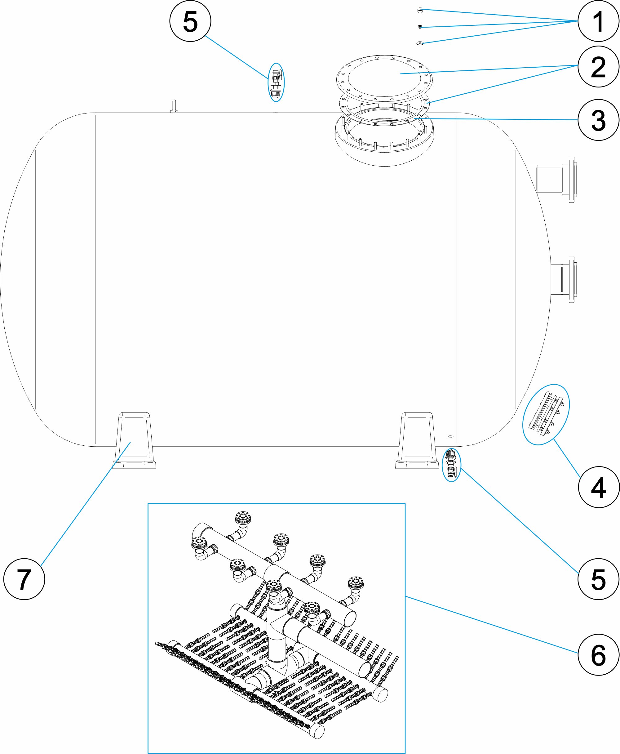 Фильтр "Rodas" Ø 1800 мм, 112 м3/ч, с боковым подключением, засыпка 1 м, 4 Бар