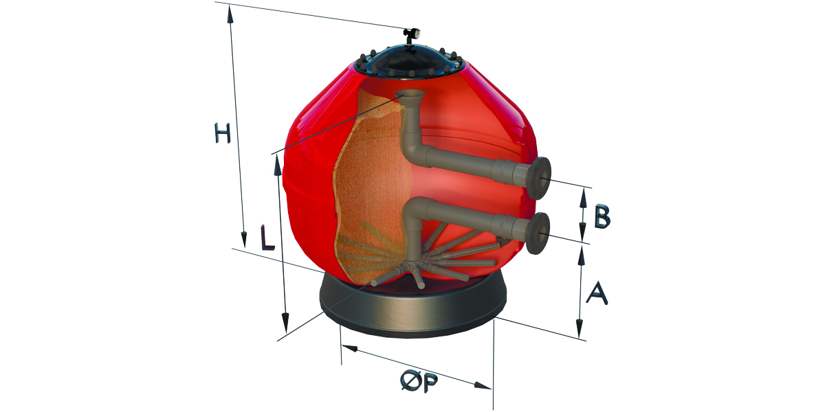 Фильтр "Vesubio" Ø 1200 мм, 22-33 м3/ч, с боковым подключением, засыпка 1 м