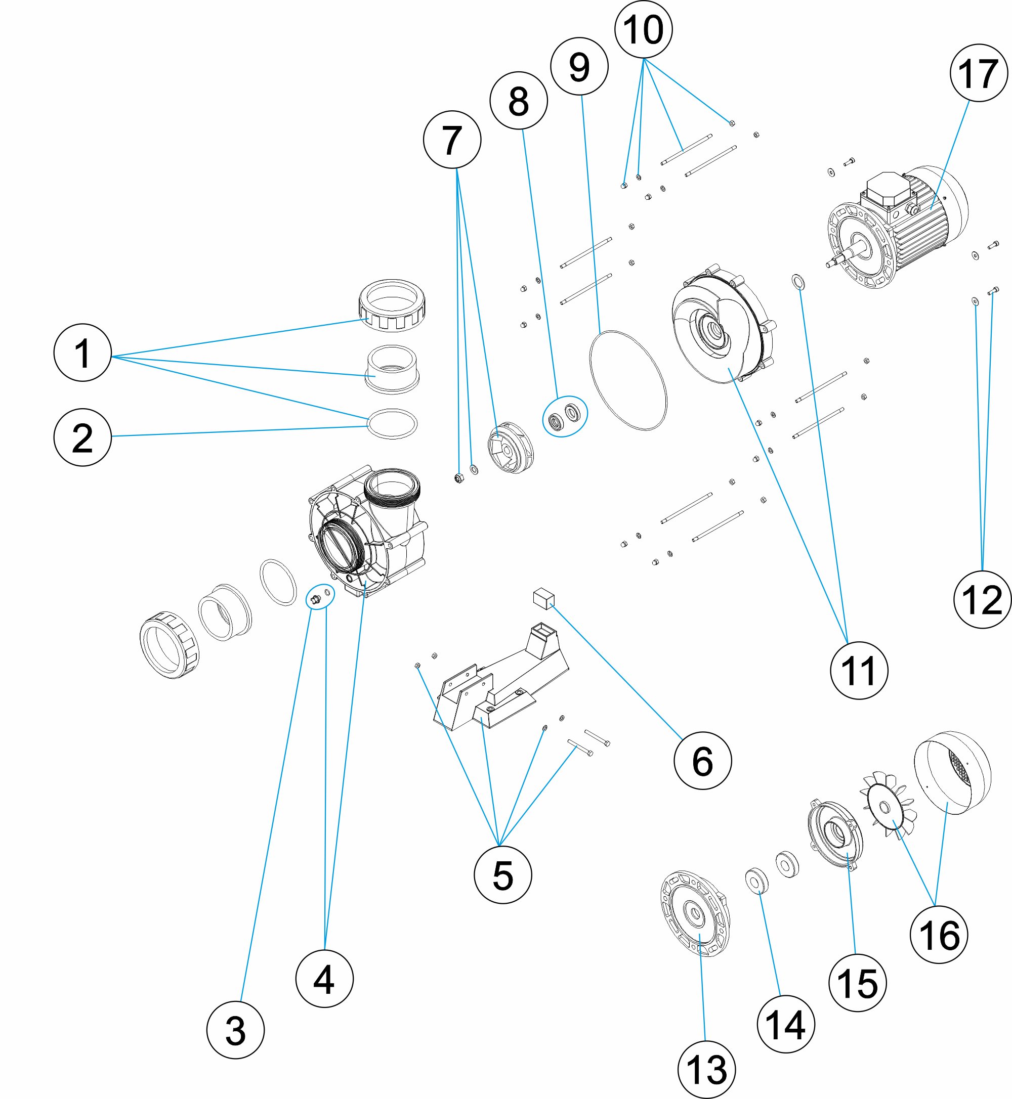 Бронзовый импеллер, вал и корзина предварительного фильтра сделаны из нержавеющей стали.
